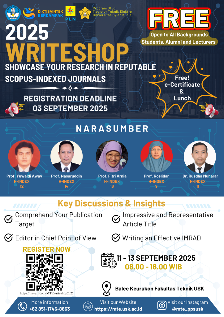 Program Studi Magister Teknik Elektro Universitas Syiah Kuala kembali menghadirkan WRITESHOP 2025 dengan tema: